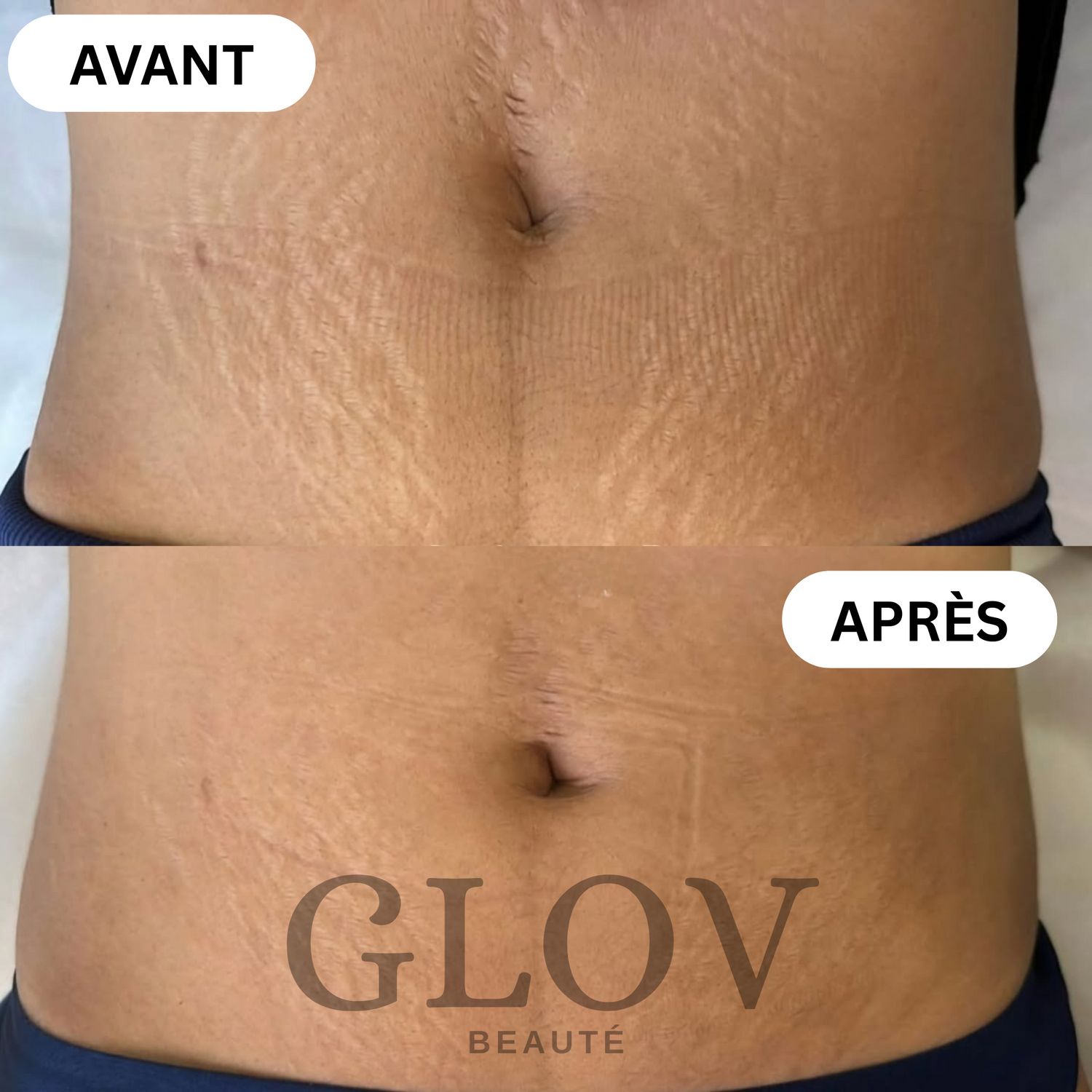 Glov Beauté atténue visiblement l’apparence des vergetures post-grossesse, lisse la texture de la peau, stimule la production de collagène et aide votre peau à retrouver toute sa confiance.